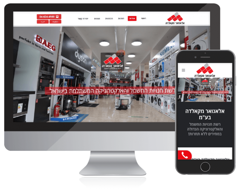 בניית אתר רספונסיבי לאלאנואר מקאלדה, רשת שיווק מוצרי חשמל משתלמת במיוחד.